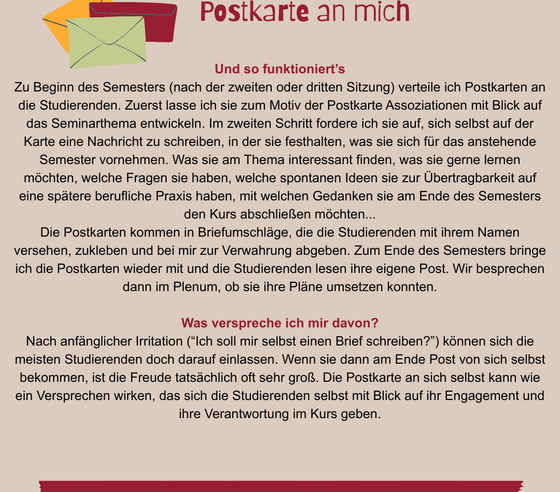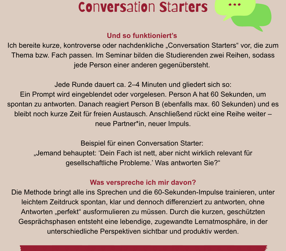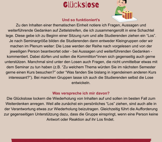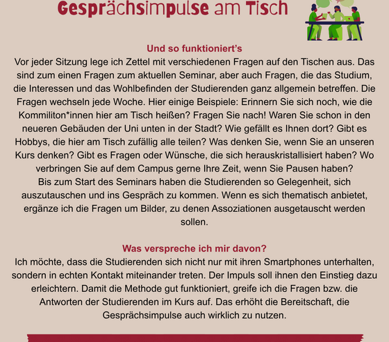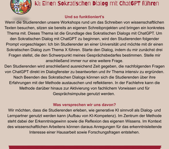 Ab dem 1. Dezember 2025 öffnet sich hier jeden Tag ein neues Türchen mit methodischen Anregungen für eine gute Lernatmosphäre und konstruktive Einbindung von KI in die Lehre. Lassen Sie sich überraschen, welche spannenden Ideen die Kolleginnen und Kollegen in ihren Kursen umsetzen!